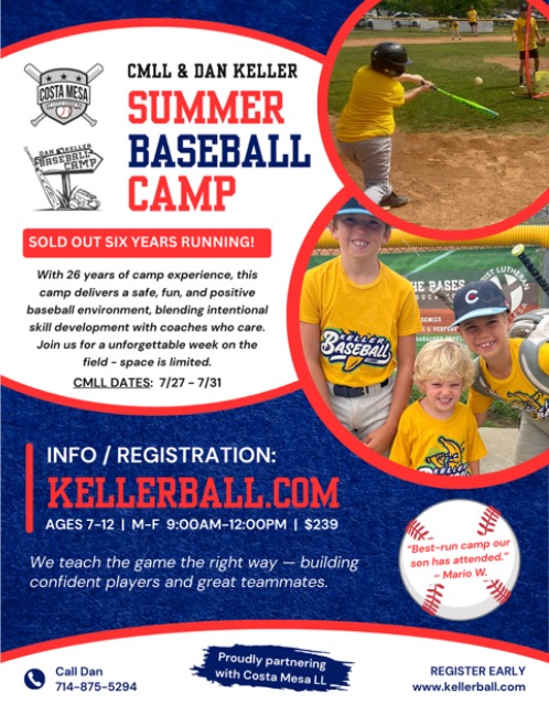 Discount code: 2026CMESA100 for $100 off for Costa Mesa Little League families (expires 4/4)